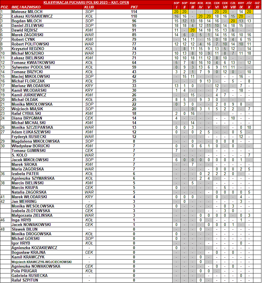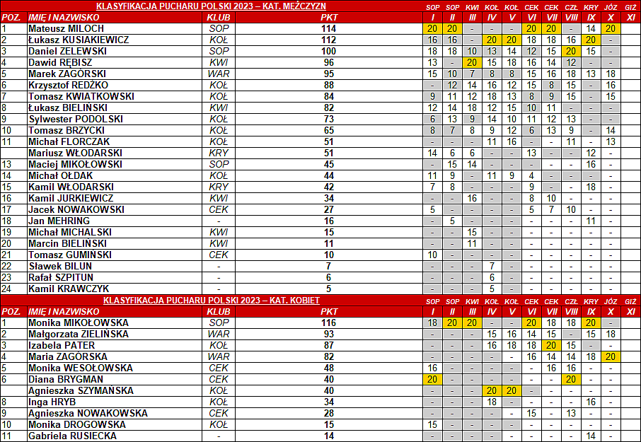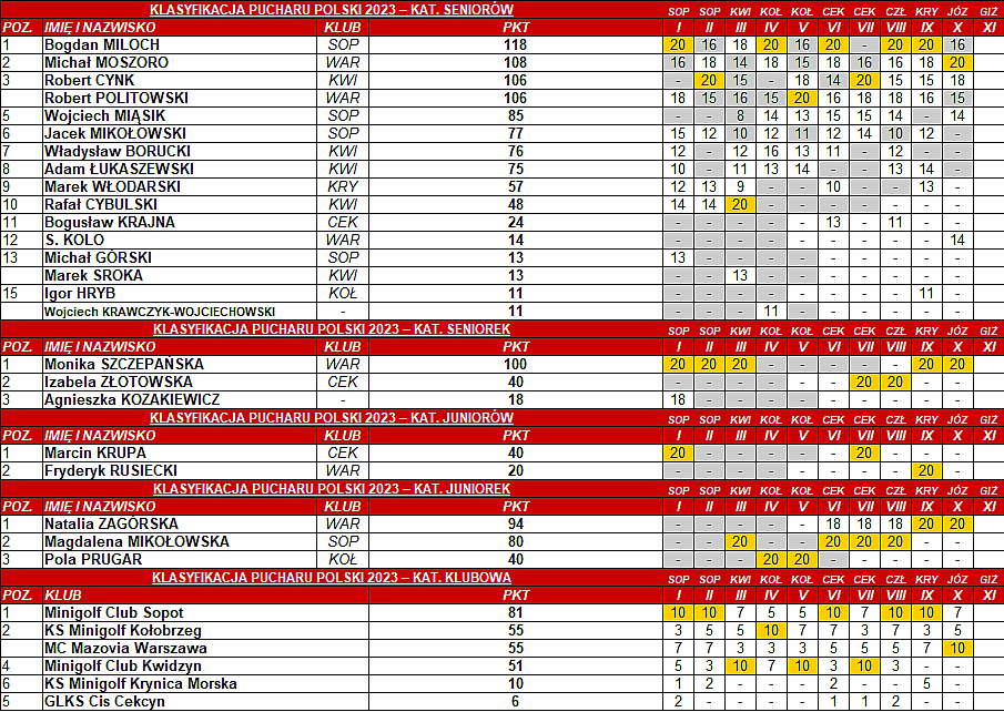 Klasyfikacja Generalna Sezonu 2023 po X Pucharze Polski w Minigolfie Aktualizacja: 11.08.2023
